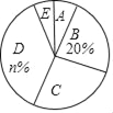 全民健身运动已成为一种时尚,为了了解我市居民健身运动的情况,某健身馆的工作人员开展了一项问卷调查,问卷包括五个项目:A:健身房运动;B:跳广场舞;C:参加暴走团;D:散布;E:不运动.