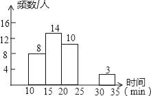 某校中午学生用餐比较拥挤,为建议学校分年级错时用餐,李老师带领数学学习小组在某天随机调查了部分学生,统计了他们从下课到就餐结束所用的时间,并绘制成统计表和如图所示的不完整统计图.