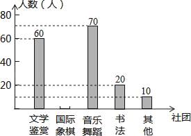 为了深化课程改革,某校积极开展校本课程建设,计划成立“文学鉴赏”、“国际象棋”、“音乐舞蹈”和“书法”等说个社团,要求每位学生都自主选择其中一个社团,为此,随机调查了本校部分学生选择社团的意向.并将调查结果绘制成如下统计图表(不完整):