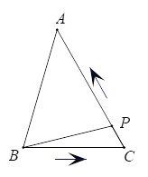 如图,在△ABC中,∠C=60°,BC=3厘米,AC=4厘米,点P从点B出发,沿B→C→A以每秒1厘米的速度匀速运动到点A.设点P的运动时间为x秒,B、P两点间的距离为y厘米.