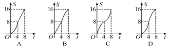 如图,在平面直角坐标系中,四边形OBCD是边长为4的正方形,平行于对角线BD的直线l从O出发,沿x轴正方向以每秒1个单位长度的速度运动,运动到直线l与正方形没有交点为止.设直线l扫过正方形OBCD的面积为S,直线l运动的时间为t(秒),下列能反映S与t之间函数关系的图象是( )