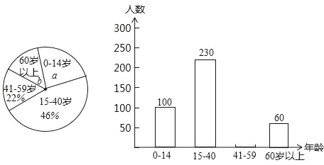 典典同学学完统计知识后,随机调查了她家所在辖区若干名居民的年龄,将调查数据绘制成如下扇形和条形统计图: