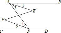 已知:点P在直线CD上,∠BAP+∠APD=180°,∠1=∠2.