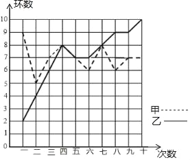 某市射击队甲、乙两名队员在相同的条件下各射耙10次,每次射耙的成绩情况如图所示: