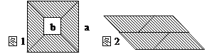 从边长为a的大正方形纸板中挖去一个边长为b的小正方形后,将其裁成四个相同的等腰梯形(如图1),然后拼成一个平行四边形(如图2)。那么通过计算两个图形的阴影部分的面积,可以验证成立的公式是( )