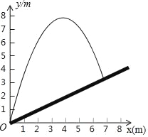 如图,将一个小球从斜坡的点O处抛出,小球的抛出路线可以用二次函数y=4x﹣x2刻画,斜坡可以用一次函数y=x刻画,下列结论错误的是( )