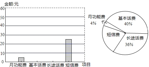 小王某月手机话费中的各项费用统计情况见下列图表,请你根据图表信息完成下列各题: