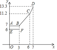 设行驶路程xkm时,调价前的运价y1(元),调价后的运价为y2(元)如图,折线ABCD表示y2与x之间的函数关系式,线段EF表示当0≤x≤3时,y1与x的函数关系式,根据图表信息,完成下列各题: