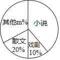 九年级一班开展了“读一本好书”的活动,班委会对学生阅读书籍的情况进行了问卷调查,问卷设置了“小说”“戏剧”“散文”“其他”四个选项,每位同学仅选一项,根据调查结果绘制了如下不定整的频数分布表和扇形统计图.