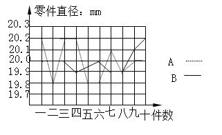 为选派一名学生参加全市实践活动技能竞赛,A.B两位同学在学校实习基地现场进行加工直径为20mm的零件的测试,他俩各加工的10个零件的相关数据依次如下图表所示(单位:mm)