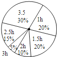 初三年级学习压力大,放学后在家自学时间较初一、初二长,为了解学生学习时间,该年级随机抽取25%的学生问卷调查,制成统计表和扇形统计图,请你根据图表中提供的信息回答下列问题: