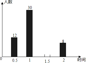 某校倡议八年级学生利用双休日在各自社区参加义务劳动,为了解同学们劳动情况,学校随机抽查了部分学生的劳动时间,并用得到的数据绘制成不完整的统计图表,如图所示: