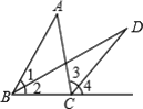 如图,△ABC中,∠1=∠2,∠3=∠4,若∠D=25°,则∠A=( )
