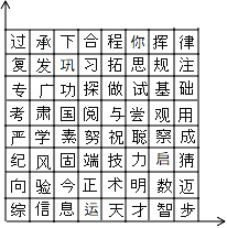 如图是一组密码的一部分,请你运用所学知识找到破译的“钥匙”.目前,已破译出“正做数学”的真实意思是“祝你成功”.若“正”所处的位置为(x,y),你找到的密码钥匙是:横坐标_____,纵坐标_____,破译的“今天考试”真实意思是_____.