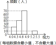 某校为了解八年级学生的视力情况,对八年级的学生进行了一次视力调查,并将调查数据进行统计整理,绘制出如下频数分布表和频数分布直方图的一部分.