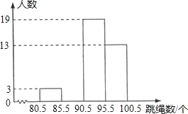 跳绳数/个 | 81 | 85 | 90 | 93 | 95 | 98 | 100 |