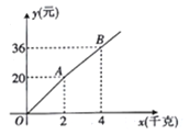 如图,购买一种苹果,所付款金额y(元)与购买量x(千克)之间的函数图象由线段OA和射线AB组成,则一次购买5千克这种苹果比分五次购买1千克这种苹果可节省( )元.