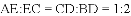 如图,在中,,分别与、相交于点、,若,,则的值为( )