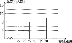 为了提高学生书写汉字的能力,增强保护汉字的意识,我市举办了首届“汉字听写大赛”,经选拔后有50名学生参加决赛,这50名学生同时听写50个汉字,若每正确听写出一个汉字得1分,根据测试成绩绘制出部分频数分布表和部分频数分布直方图如图表: