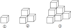 下列各图是棱长为的小正方体摆成的,如图①中,共有个小正方体,从正面看有个正方形,表面积为;如图②中,共有个小正方体,从正面看有个正方形,表面积为;如图③,共有个小正方体,从正面看有个正方形,表面积为;…