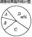 (2)扇形统计图中,m的值为 ,“C”所对应的圆心角的度数是 ;