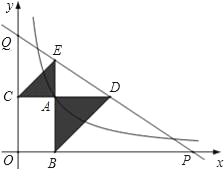 如图,已知动点A在函数y=(x>0)的图象上,AB⊥x轴于点B,AC⊥y轴于点C,延长CA至点D,使AD=AB,延长BA至点E,使AE=AC,直线DE分别交x轴,y轴于点P,Q,当QE:DP=9:25时,图中的阴影部分的面积等于___.