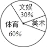 如图所示的是某班全体学生在课外活动中参加各种兴趣小组的情况统计图,那么从这个班中任意挑选一人,恰为参加美术兴趣小组的学生的概率是_____%.