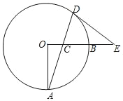 如图,OA,OB是⊙O的两条半径,OA⊥OB,C是半径OB上的一动点,连接AC并延长交⊙O于D,过点D作直线交OB延长线于E,且DE=CE,已知OA=8.