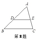 如图,以A为位似中心,将△ADE放大2倍后,得位似图形△ABC,若表示△ADE的面积,表示四边形DBCE的面积,则=" " ( )