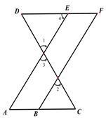 如图,AE、BF、DC是直线,B在直线AC上,E在直线DF上,∠1=∠2,∠A=∠F.
