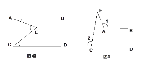 (2)现在如图b示,仍有AB∥CD,但点E在AB与CD的上方,①请尝试探索∠1,∠2,∠E三者的数量关系. ②请说明理由.