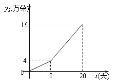 另一部分鲜花在淘宝网销售,网上销售日销售量y2(万朵)与时间x(x为整数,单位:天) 关系如下图所示.