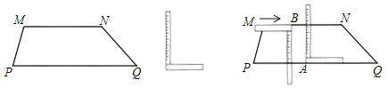 如图是一块四边形木板和一把曲尺(直角尺),把曲尺一边紧靠木板边缘PQ,画直线AB,与PQ,MN分别交于点A,B;再把曲尺的一边紧靠木板的边缘MN,移动使曲尺另一边过点B画直线,若所画直线与BA重合,则这块木板的对边MN与PQ是平行的,其理论依据是_________.