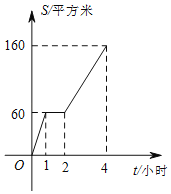 园林队在某公司进行绿化,中间休息了一段时间,已知绿化面积S(平方米)与工作时间t(小时)的关系的图象如图所示,则休息后园林队每小时绿化面积为__平方米.