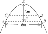 如图,是某条河上的一座抛物线形拱桥,拱桥顶部点E到桥下水面的距离EF为3米时,水面宽AB为6米,一场大雨过后,河水上涨,水面宽度变为CD,且CD=2米,此时水位上升了多少米?