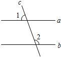 3、如图,直线a∥b,直线c分别与a,b相交,若∠1=70°,则∠2=