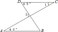 23、如图,AB∥CD,∠A=40°,∠D=45°,求∠1和∠2.