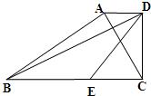 16、如图,在梯形ABCD中,AD∥BC,AC⊥BD,AC=5,BD=12,若E是BC上的一点,BE=6.5,则DE=