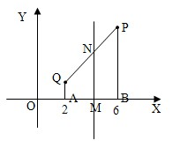 21、如图,在直角坐标系中,点M(x,0)可在x轴上移动,点P(6,5),Q(2,1),QA⊥X轴于A点,PB⊥X轴于点B,当M点为AB的中点时,作MN⊥X轴交PQ于N点,求N点的坐标.