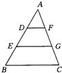 16、如图,D,E是AB边上的三等分点,F,G是AC边上的三等分点,写出图中的相似三角形,并求出对应的相似比.
