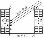 (2) 当α=30°时,甲楼楼顶B点的影子落在乙楼的第几层?若α每小时增加15°,从此时起几小时后甲楼的影子刚好不影响乙楼采光 ?