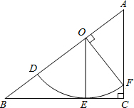 在△ABC中,∠C=90°,若FO⊥AB于点O,E在BC边上,扇形ODF的弦FE平分∠OFC.