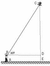 小明站在A处放风筝,风筝飞到C处时的线长为20米,这时测得∠CBD=60°,若牵引底端B离地面1.5米,求此时风筝离地面高度。(计算结果精确到0.1米,)