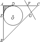 如图,等腰Rt△ABC的直角边AB、AC分别与圆O相切于点E、D,AD=