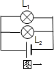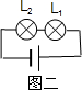 再接入电路,灯L1、L2是并联,等效电路图如图一所示;