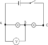 (2)分别把电压表接在AB、BC和AC两点上,分别测量两只灯泡两端的电压和电路两端的总电压,测量串联电路电压图如下:
