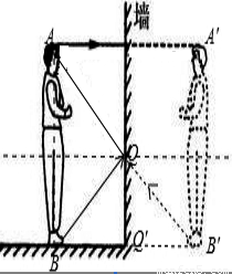 人身高AB=1.60m,根据平面镜成像规律对称性,做出人在镜面中的像A′B′,人能看到自己的脚,一定有光线经平面镜反射进入人眼,如图所示.
