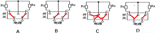 如图所示,试通过一个开关将电炉中的两个发热元件R1和R2并联到电源上.当开关处于哪一种图示状态时,能满足上述要求?( )A.