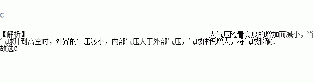 一位小朋友的氢气球不小心脱手升到了空中,当气球升到高空时发生了破裂,以下关于气球升到高空破裂的原因的分析正确的是( )