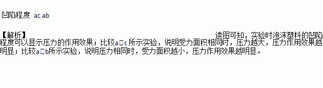 在探究压力的作用效果与哪些因此有关时,某同学做了如图所示的三个实验,通过观察三次实验时泡沫塑料______,显示压力作用的效果。比较______两图所示实验,说明受力面积相同时,压力越大,压力作用效果越明显;比较________两图所示实验,说明压力相同时,受力面积越小,压力作用效果越明显。